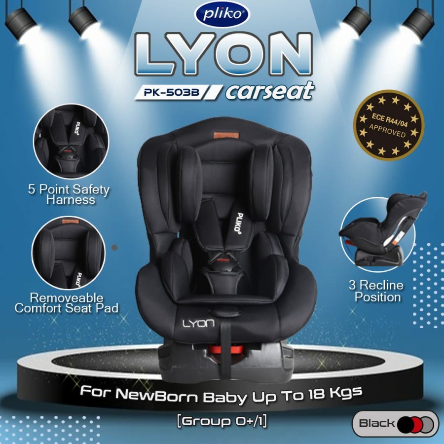 Pliko Journey atau Combi newborn car seat dengan harness 5 titik.